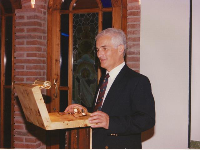 El Dr. Nolla presentant una sessió a l’aula Esquerdo del Servei de Medicina Interna. El servei ocupava tot el Pavelló de Sant Leopold del recinte modernista de l’Hospital de la Santa Creu i Sant Pau de Barcelona. [Jordi Casademont]
