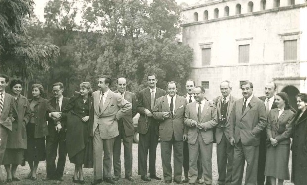 Moments d’esbarjo amb col·legues metges de Girona, entre altres Casellas, Bacquelaine, Bosch, Llobet, el seu germà Cinto, Vila, Sánchez i Reyner, 1955. [Josefina Muñoz Casadevall]