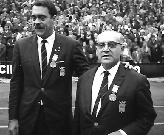 El director mèdic de la Federació Espanyola de Tenis, Mario Cabanes Sabat, amb el tenista de la Copa Davis, Manuel Santana. [Arxiu Família Cabanes]