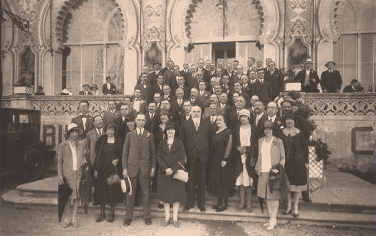Enric Raduà Oriol, entre els assiistents a un banquet de la ‘Unión y Defensa de Montepíos de la Provincia de Barcelona y sus Afueras’, actual Federació de Mutualitats de Catalunya. Hotel Florida del Tibidabo, Barcelona, c. 1927. [Foto Brangulí | ANC]