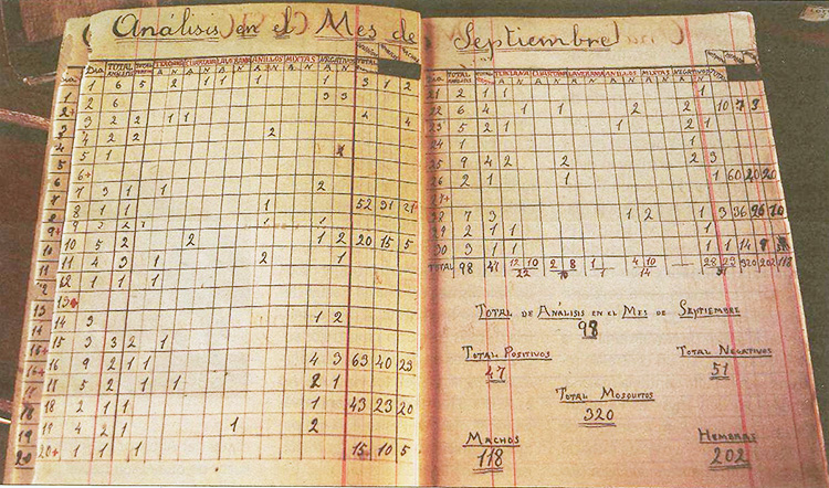 Una de les fitxes estadístiques del Dispensari Antipalúdic de Sant Jaume d’Enveja que omplia el doctor Ildefons Canicio. [Arxiu Família Canicio]