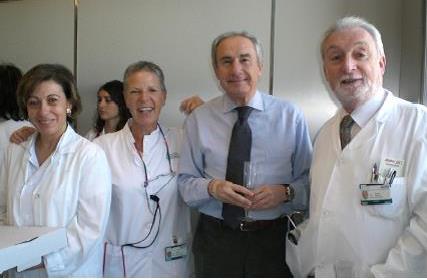 Les “supers” Esther Armans i Ana Puig amb el Dr. Betriu i el cardiòleg el Dr. Valentí Valls a l’Hospital Clínic de Barcelona, 2000ca.