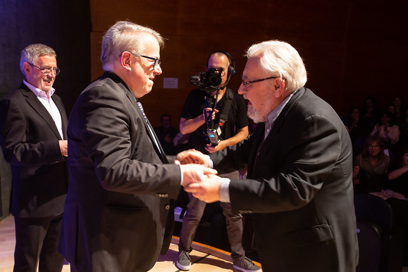 Recollint el Premi a l’Excel·lència Professional del Col·legi de Metges de Barcelona de la mà dels membres de la Junta de Govern del CoMB els doctors Jaume Padrós i Jaume Sellarès, 2023. [CoMB]