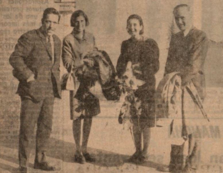 Els doctors Josep M. Figueras i Josep M. de Moragas amb les seves esposes en la notícia “El cerebro electrónico gran auxiliar del medico”. [El Noticiero universal, any 78, n. 25059 (20 desembre 1966)]
