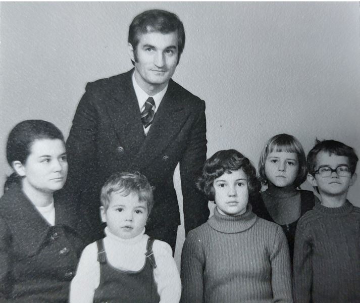 Joan Nolla amb la seva esposa Carol i els quatre fills del matrimoni: Marc, Susan, John i Tània. [Jordi Casademont]