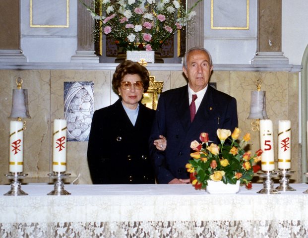 El matrimoni de Josefina Alter i Josep Badal en el seu 50è aniversari de casament a Manresa, 1993. [Josep Miquel Badal Alter]