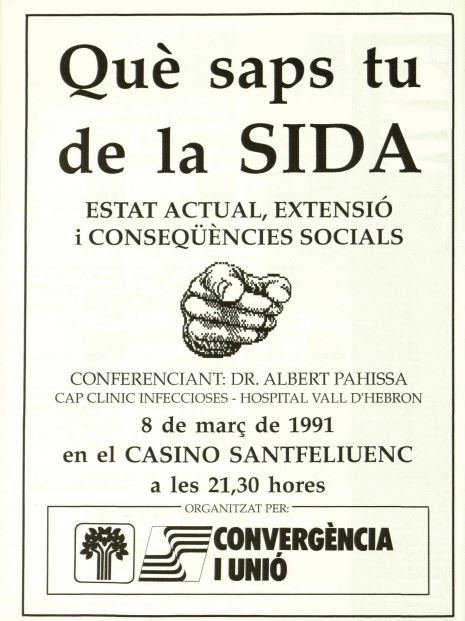 Anunci de conferència “Que saps tu de la SIDA” d’Albert Pahissa, 1 de febrer de 1991. [Vaivé]
