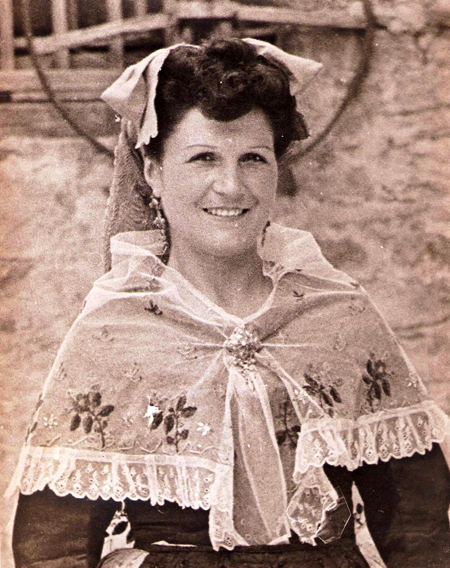 Ignàsia Salvans vesteix de pagesa durant unes festes a Manresa, Anys 1940s. [Família Ferrer Salvans]