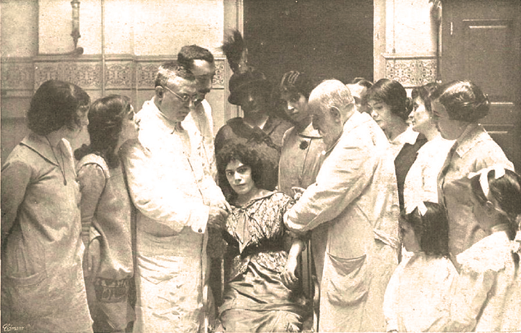 El doctors Ferran i Masip immunitzen contra la ràbia una dona [Museu d’Història de la Medicina de Catalunya (MHMC)]