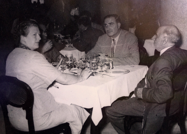 Acompanyat de la seva esposa, Maria Dolors Punyed, el neuròleg Romà Massot Gimeno assisteix al III Congrés Nacional de Neuropsiquiatria que a Santiago de Compostela el 1952. [Germans Massot Punyet]