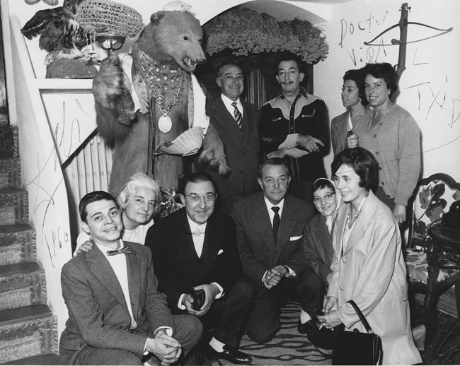 El psiquiatre Ramon Vidal Teixidor, ajupit el tercer a l’esquerra, amb Salvador Dalí, família i amics. [Arxiu Maruja Redondo]