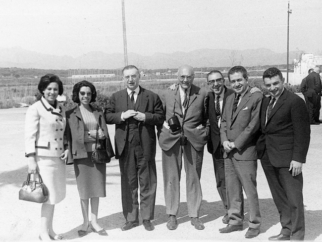 D’esquerra a dreta: els senyors Revello de Toro, Domènech, Sra. de Jaime Arias i els doctors Antoni Puigvert Gorro i Ramon Vidal Teixidor. [Arxiu Maruja Redondo]