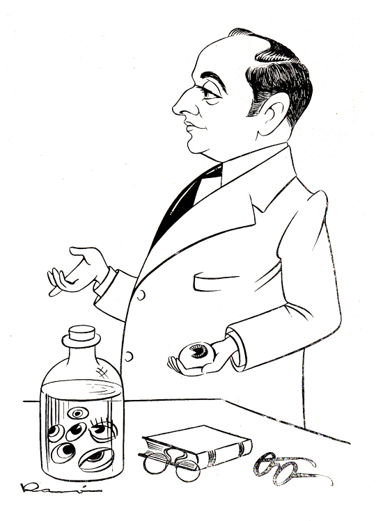 L’oftalmòleg Jaume Padrós de Gaona en la caricatura de Ramón que acompanya l’article publicat a Doctorado médico. Archivos médico-biográficos, l’any 1952. [Dr. Jaume Padrós]