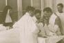 EL professor Ignasi Barraquer Barraquer, amb ulleres i perilla, dirigeix una intervenció oftàlmica amb, entre d’altres, el metge oculista Jaume Padrós de Gaona a la Clínica familiar de la Ronda de Sant Pere núm. 3 de Barcelona, c. 1910 [Família Barraquer]