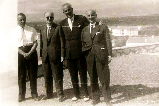 D’esquerra a dreta, els metges Jaume Sabater, Bonaventura Vallespinosa, Josep Trueta i López Soler, al Baix Camp cap els anys 1960. [Família Sabater Albafull]