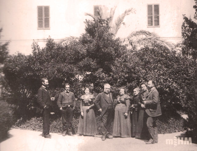 Fotografia familiar del doctor Giné als jardins del Manicomi Nova Betlem a Sant Gervasi de Cassoles, cap al 1890. [Museu d'Història de la Medicina de Catalunya (MHM)]